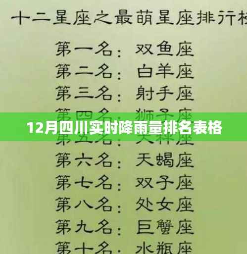 随着冬季的到来,四川地区的气候逐渐变得湿润多雨,为了更好地了解各地的降雨情况,本文将为大家呈现一份详尽的《12月四川实时降雨量排名表格》,通过这份表格,我们可以清晰地看到四川各地降雨量的排名情况,以便更好地应对气候变化和农业生产。