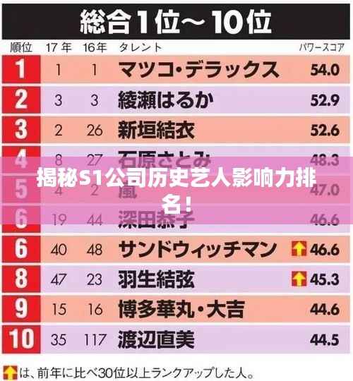 自S1公司成立以来,众多才华横溢的艺人为观众带来了无数精彩瞬间,本文将介绍S1公司的历史艺人排名,带您回顾那些在公司发展历程中留下深刻印记的艺人。